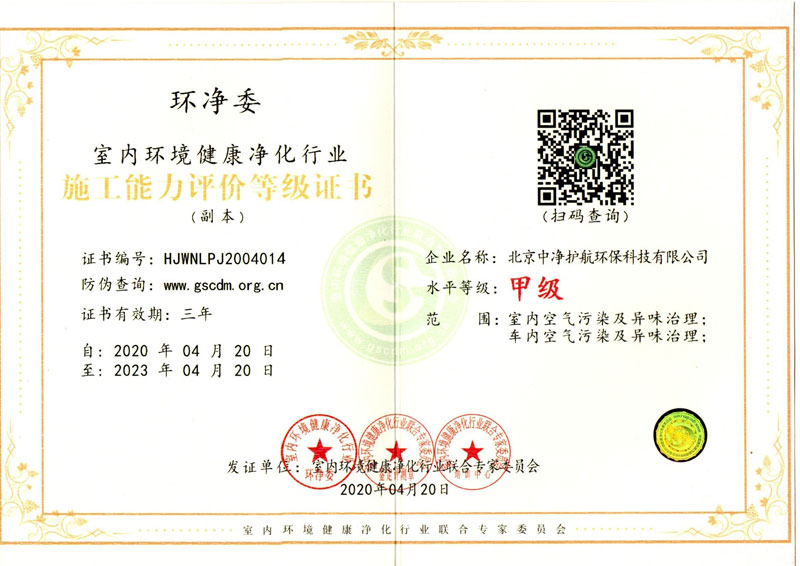 北京中凈護航環保科技有限公司總部位于首都北京,由中科院博士團隊為技術依托,引進專業的空氣凈化、治理有害揮發物管理概念及技術,提升客戶的室內、車內環境。佑多年的努力不懈,業務版圖伸延至中國內地20多個城市。中凈護航成立11年來一直致力于 室內環境的改善,成為北京APEC峰會、國家電網、教育部、人民日報社、中國汽車報、北京市政府辦公樓、北京銀行、學而思教育培訓機構等重大項目優質空氣凈化服務商。